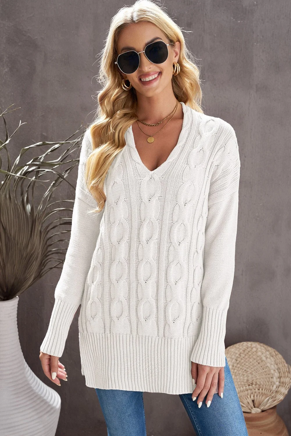 This top features elegant patterns and a premium ribbed texture for a refined look. Its drop-shoulder design adds a modern, relaxed silhouette that pairs perfectly with jeans and flats, making it a versatile choice for a polished yet casual outfit. Polyester/Viscose/Spandex